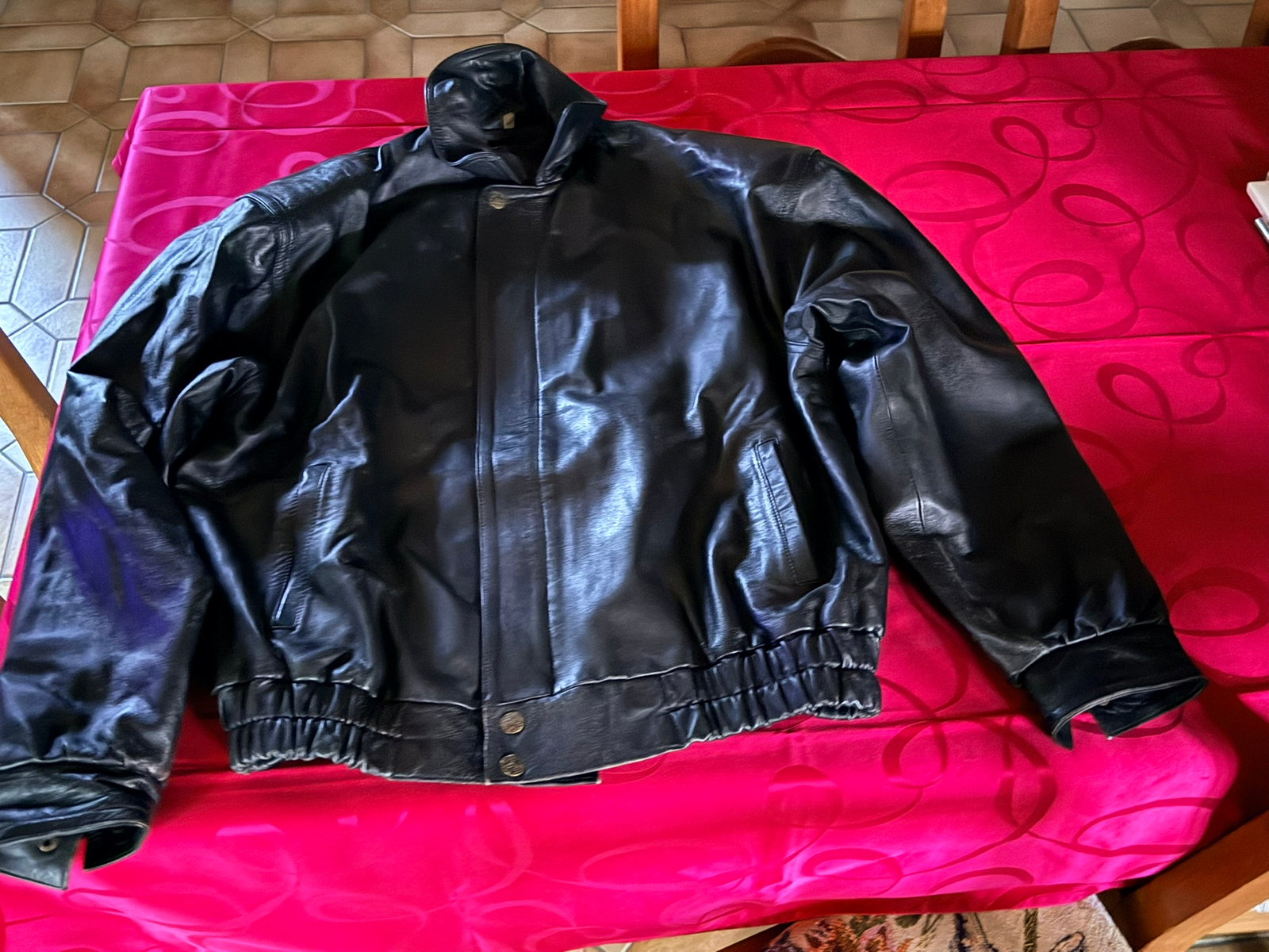 Blouson en cuir noir pour homme, taille XL.