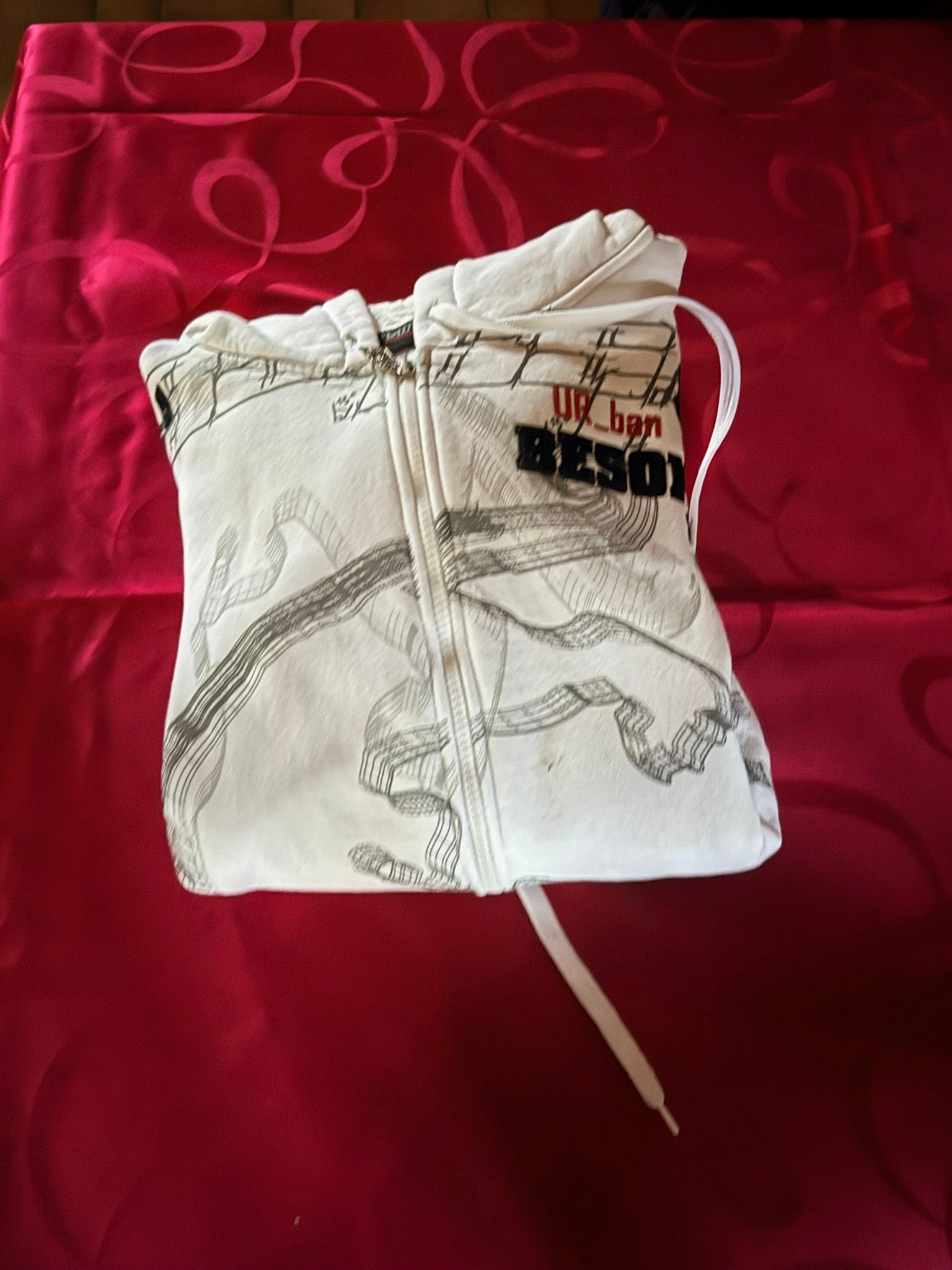 Gilet à capuche blanc pour homme, taille XL, avec motifs.